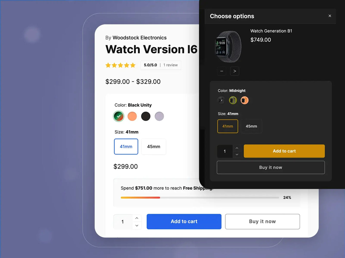 Display a mini box to help customers buy the product easily even they scroll to anywhere on your page.